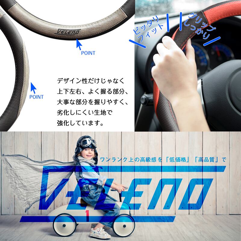 VELENO ハンドルカバー 高級感あるレザー調 パンチングレザー 青 / 赤 / 銀 / 黒 4色 Sサイズ Mサイズ 軽自動車 / 普通車 適合