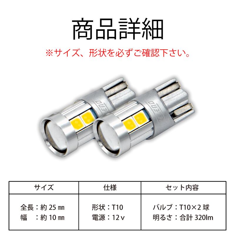 T10 バルブ LED 320lm ポジショ ンランプ 日亜チップ 9chip VELENO