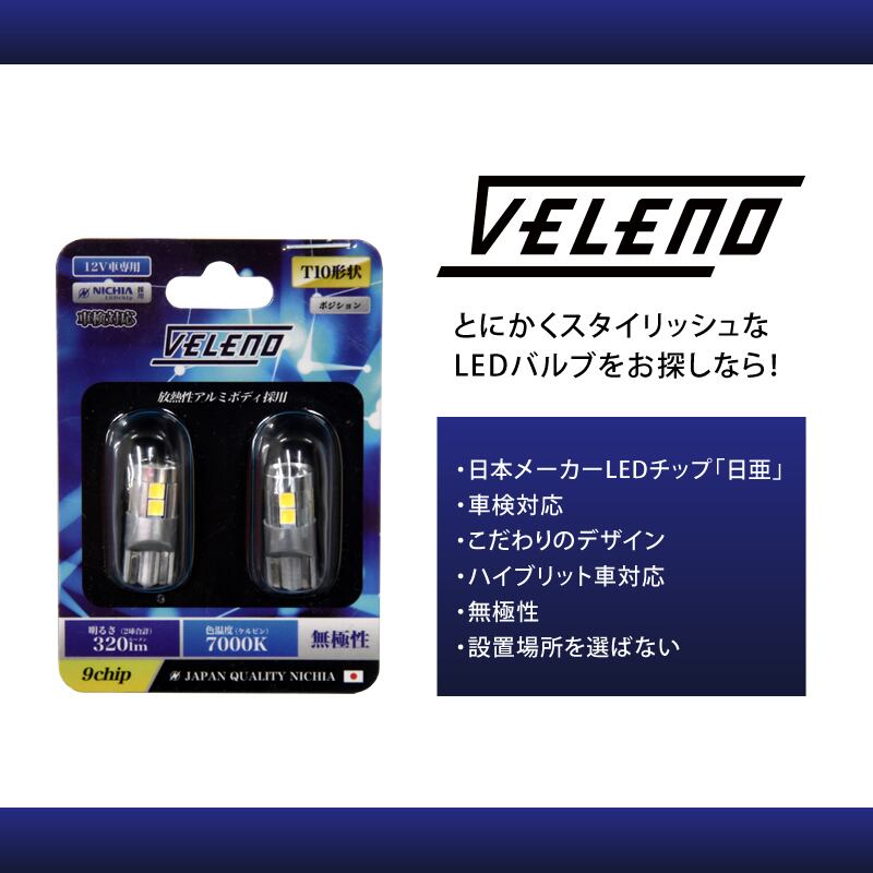 VELENO T10 320lm 日亜チップ 9連 ポジション ナンバー灯