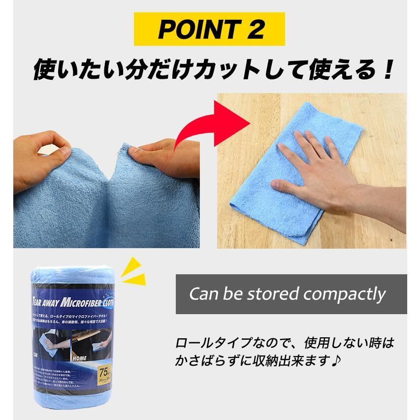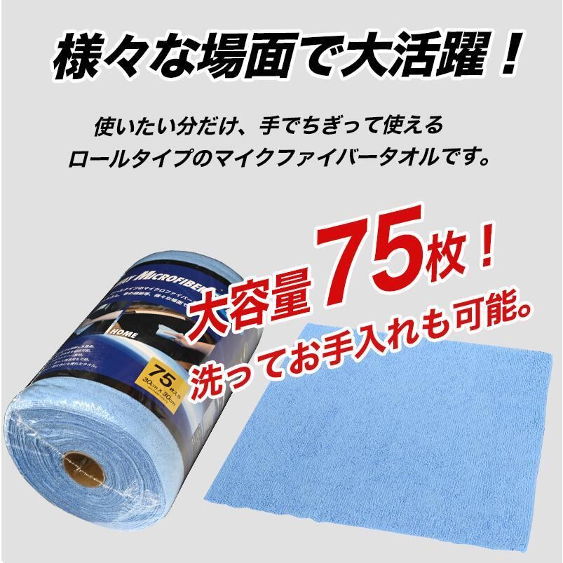 マイクロファイバータオル 75枚 ロール 洗車 掃除 大容量 超吸水 タオル マイクロファイバー 速乾 ロールタオル タオル 洗濯 可 繰り返し使える
